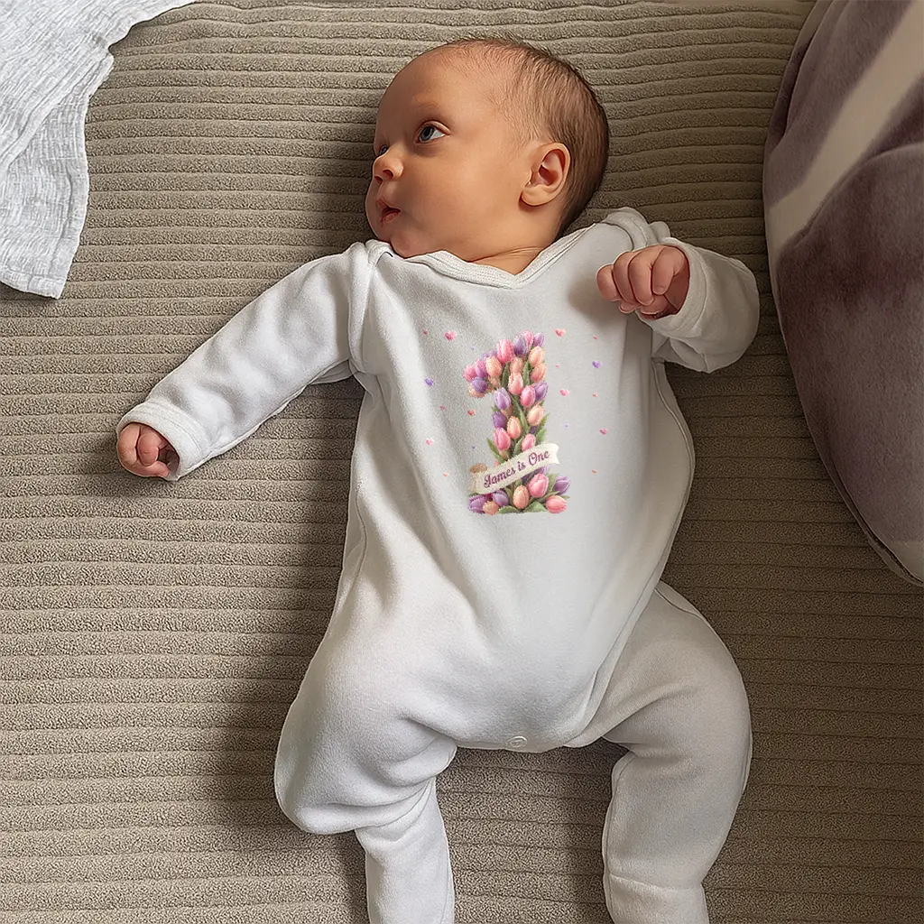 Personalized Tulip Baby Onesie | Gift for a Little Spring Heart | Custom Floral Themed Bodysuit